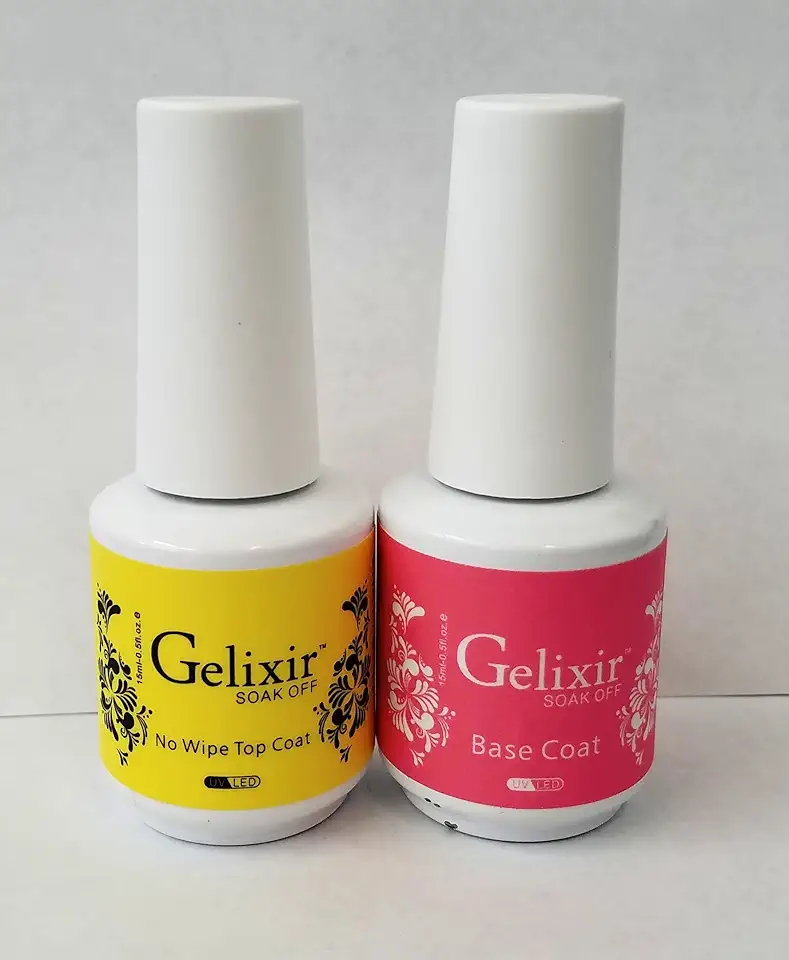 GELIXIR Soak-Off Gel Base & No-Wipe Top Coat Duo (.5 oz each, 0.2 lbs total). Strong adhesion, high-shine, chip-resistant finish. Professional gel manicure essential. 1-year warranty.